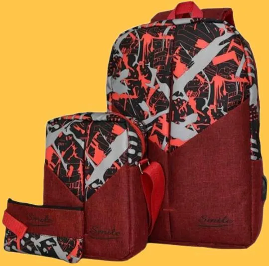 شنطة ظهر للاب توب للجنسين للسفر والمدرسة من سمايل، 3 قطع، شنطة ظهر ذكية