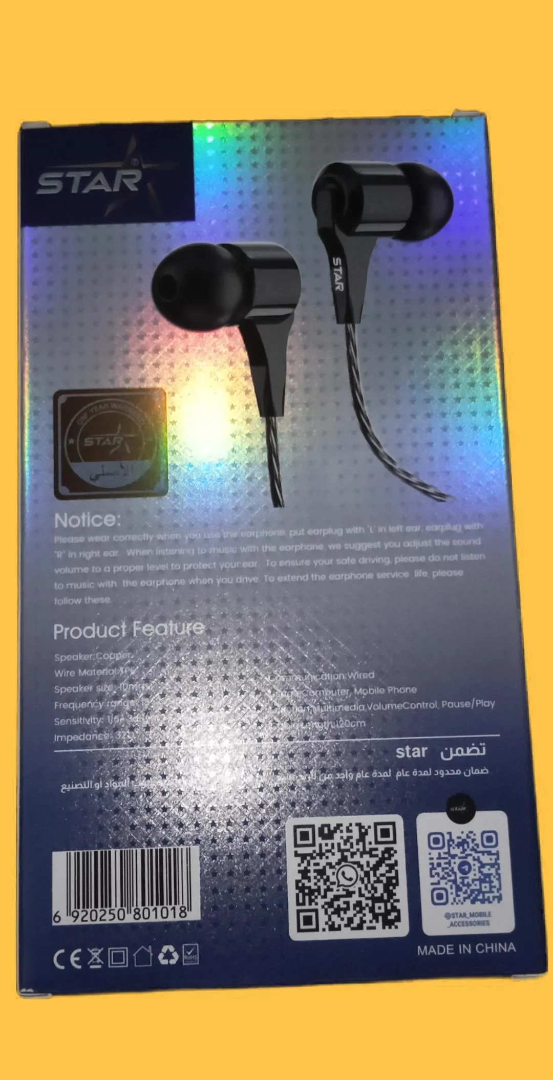 سماعات أذن سلكية من نوع Star RM-11