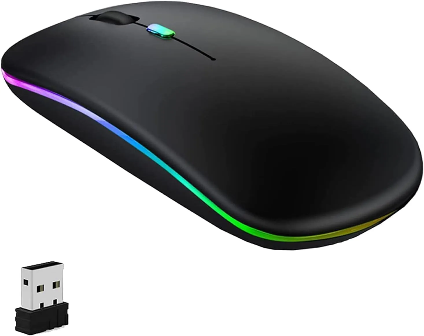 - ماوس بلوتوث لاسلكي W10 بضوء LED محمول مزدوج الوضع قابل لإعادة الشحن (بلوتوث 5.2 ومستقبل USB)، للاب توب/سطح المكتب/التابلت (اسود)، W10