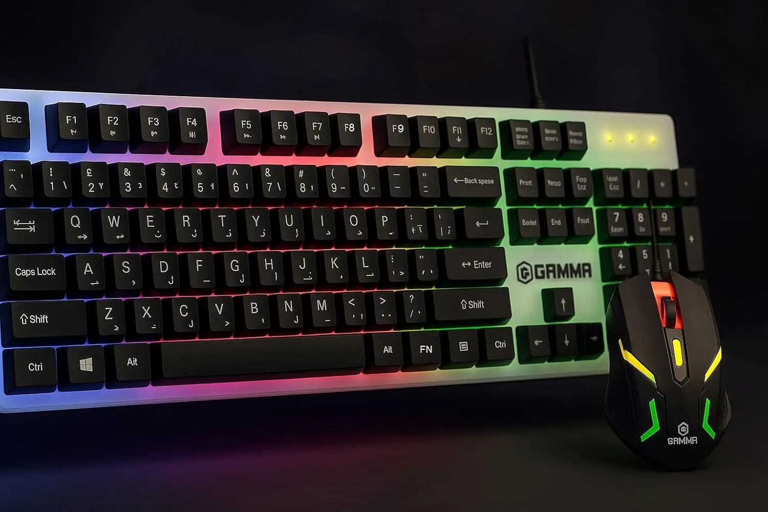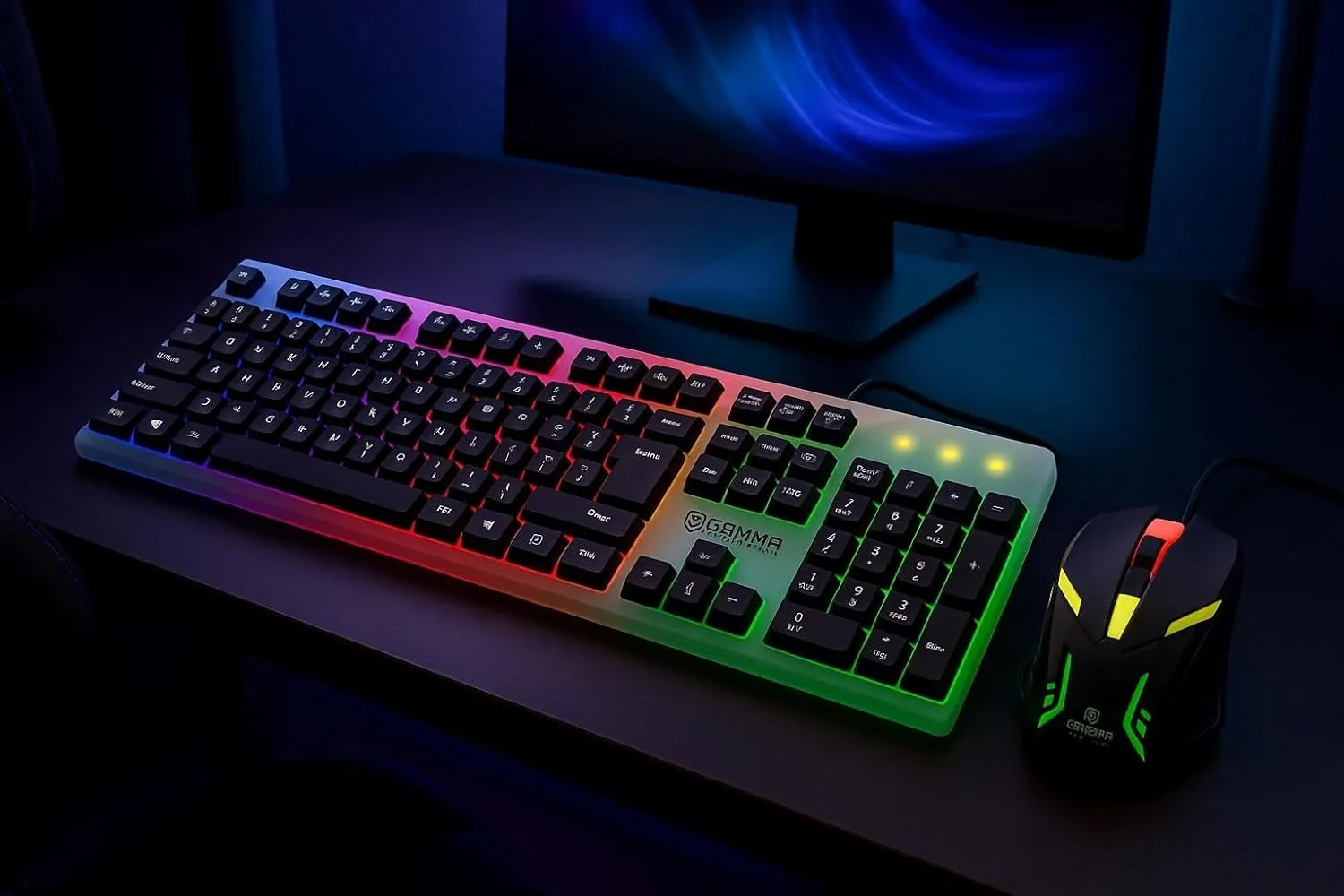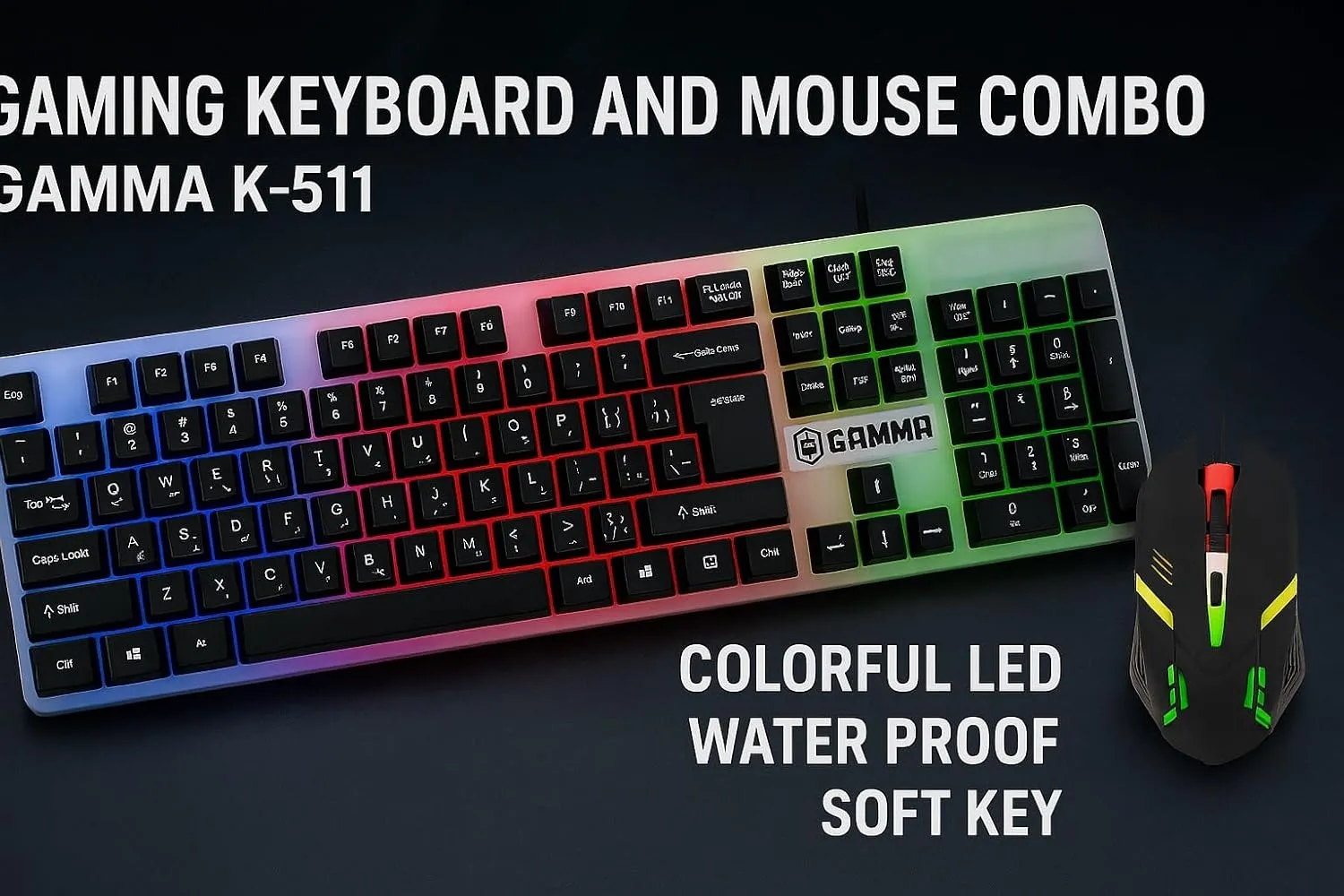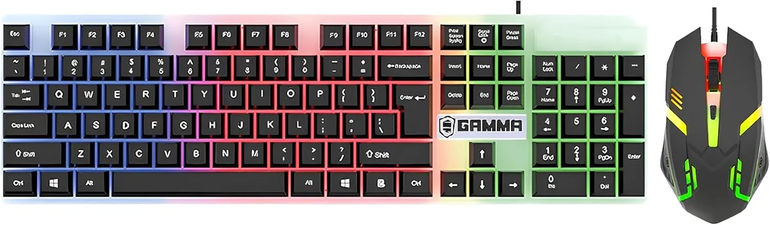 كومبو كيبورد وماوس جيمنج بإضاءة ليد - تصميم متين و مقاوم للماء - 104 زر ناعم سريع الاستجابة - متوافق مع مختلف الانظمة - جاما K-511