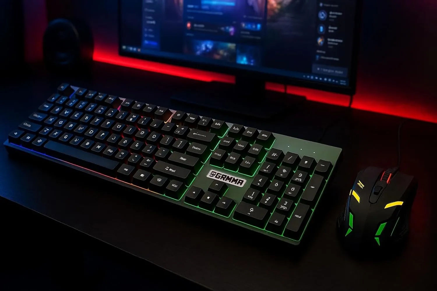 - مجموعة ألعاب متكامل يضم كيبورد وماوس بإضاءة LED متعددة الألوان